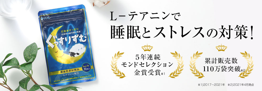 すこやかな睡眠(すっきりとした目覚め、疲労感の回復)、一過性作業のストレス緩和に。L-テアニン配合。