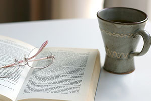 このような状態では目に負担がかかってしまいます。適切な距離をとり、適度な明るさの場所で、疲れたときには少し体を動かしたり遠くを見て休憩することで、目を疲れさせずに読書を楽しむことができます。