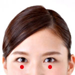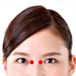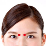 眉毛の内側の少し下。「晴明」から上に上がった辺りの小さなくぼみ。