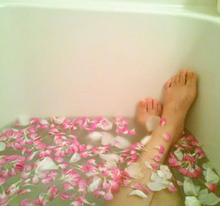 半身浴をしながらたまには優雅にバスタイムを楽しみましょう。香りが足りないと感じたらローズオイル数滴入れてみるのも良いと思いますよ。